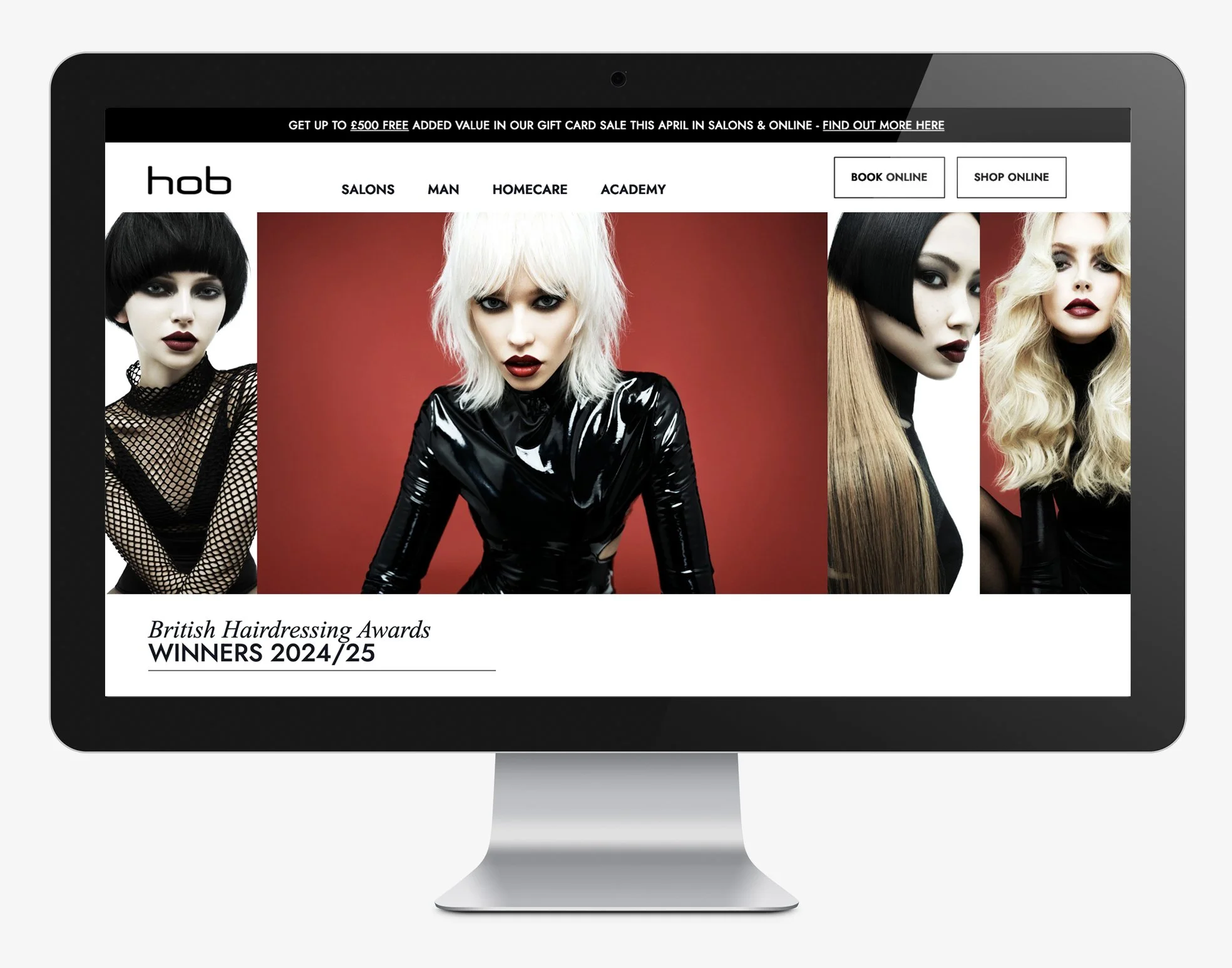 Graphic Design & Photography for HOB Salons website redesign.